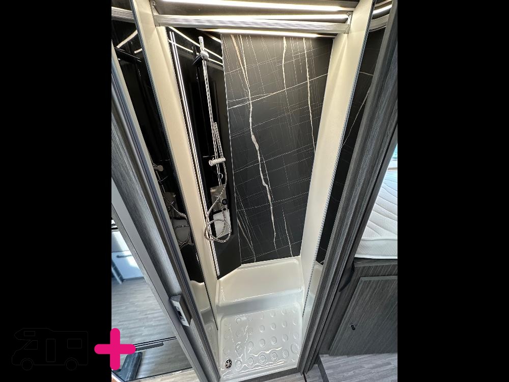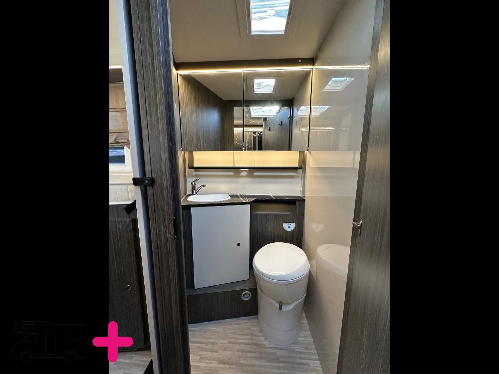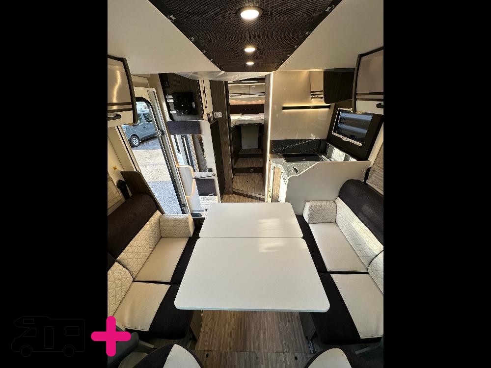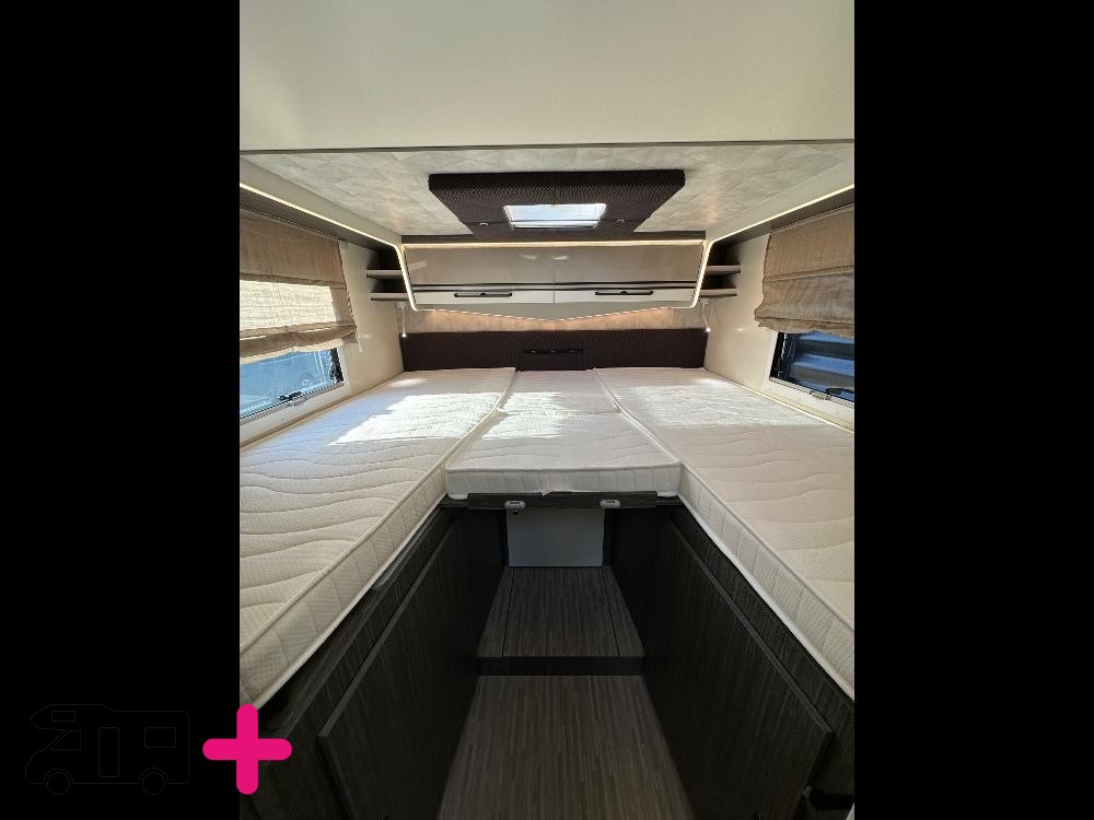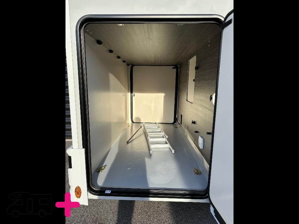 Feux antibrouillard, Pare-chocs avant couleur carrosserie, Skid Plate Noir, Jantes en alliage 16" bicolore, Volant et pommeau de vitesse en cuir, Tableau de bord Techno, TPMS - Contrôle de pression des pneus, Frein à main électrique, Porte cellule XL avec 2 points de sécurité avec fenêtre et serrure centralisée, Panneau solaire 200W avec régulateur MPPT, Skyroof, Stores occultants plissées cabine, Support TV, Housses de sièges cabine